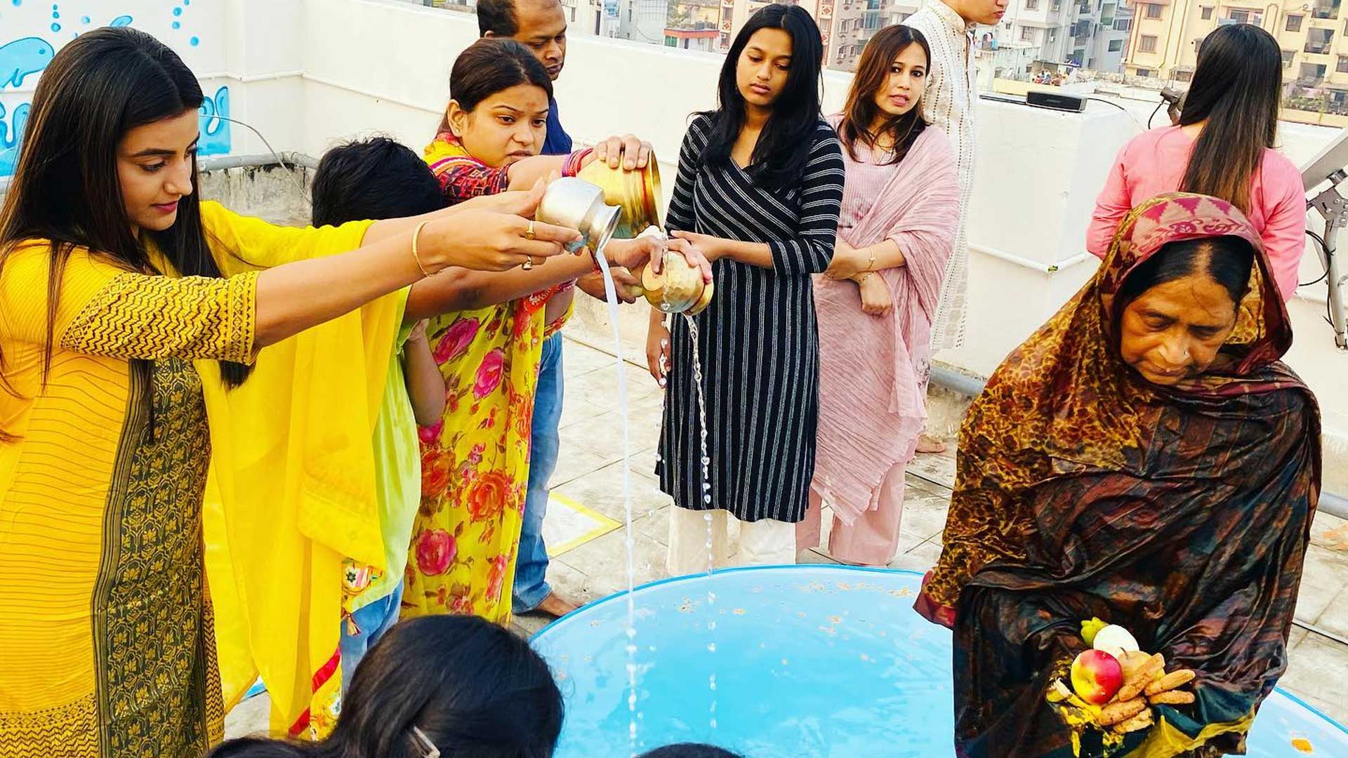 पटना। सूर्योपासना का महा लोकपर्व छठ इस वर्ष लोगों ने ज्यादा भीड़ न करते हुए भी हर्षोल्लास के साथ परिजनों के साथ संपन्न कराया। उत्तर भारत सहित पूरे देश में बिहार की संस्कृति के मानने वाले लोक छठ पर्व को पारंपरिक तरीके से मनाते हैं। चार दिनों तक चलने वाले इस महापर्व में नदी, तालाब, सरोवर स्थान और सूर्य की उपासना का विशेष महत्व है। किन्तु वैश्विक महामारी कोरोना को देखते हुए भोजपुरी के बड़ी अदाकारा अक्षरा सिंह ने इस बार अपनी बिल्डिंग के छोटे से खूबसूरत परिवार के साथ मनाया छठ पर्व।